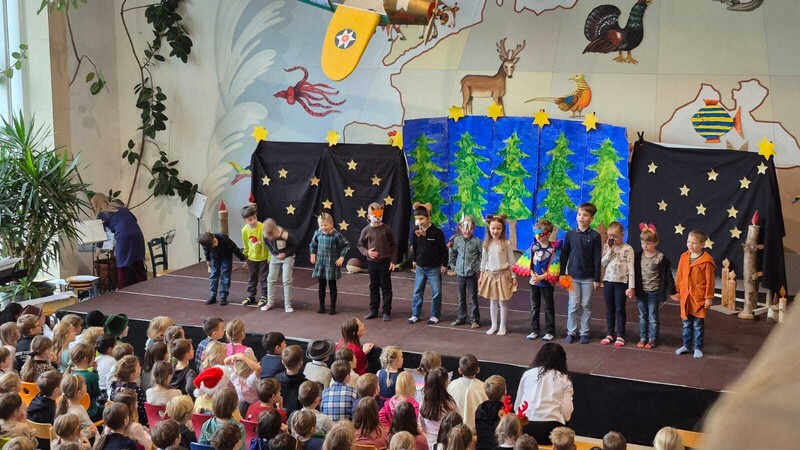Am Freitag, den 5. Dezember 2025, bekamen die Vorschulklasse und die 1. Klassen besonderen Besuch: Der Nikolausund der Krampus der Oberalmer Krampusse kamen in unsere Schule. Die Kinder hatten sich gut vorbereitet und trugen dem Nikolaus mit großer Freude Lieder und Gedichte vor.